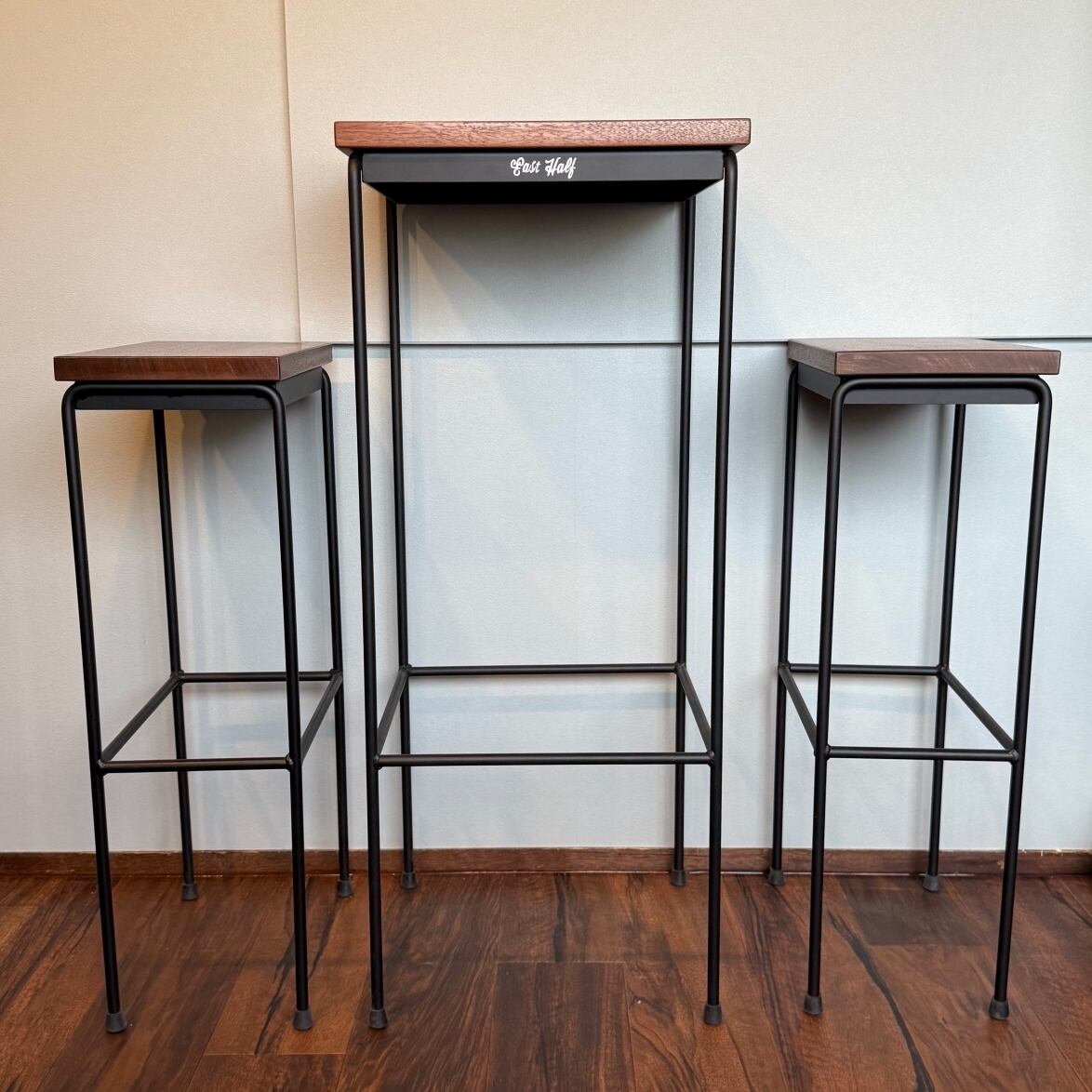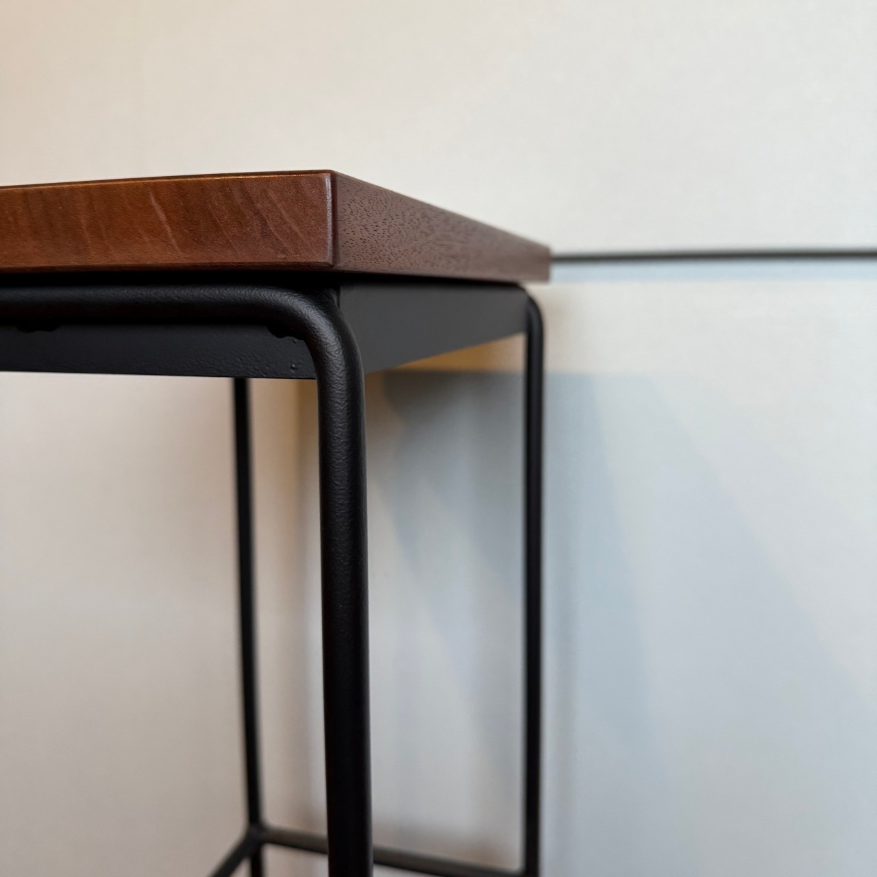 重厚感のある鉄とウォールナットの調和が取れたカウンターチェア。