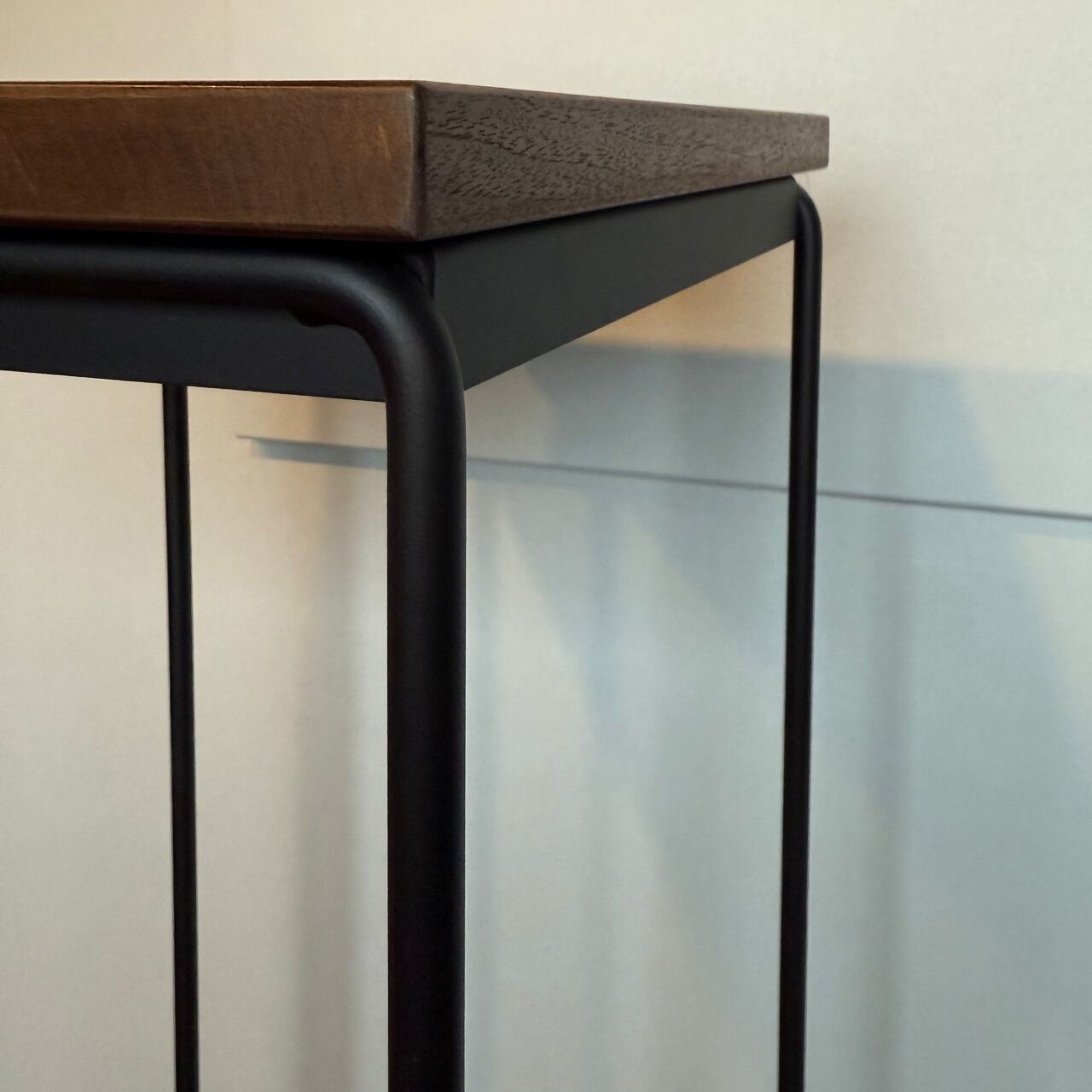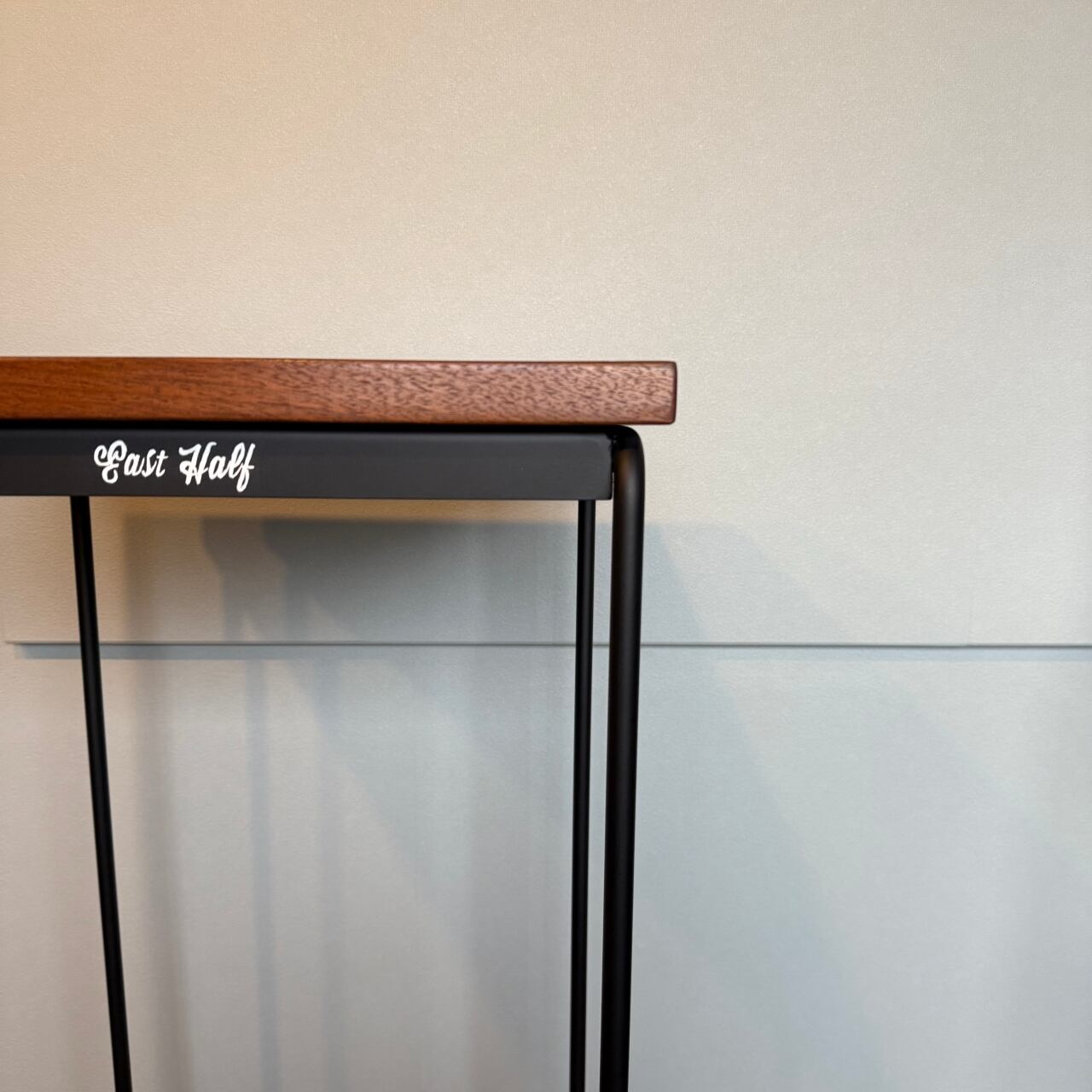 重厚感のある鉄とウォールナットの調和が取れたカウンターテーブル。