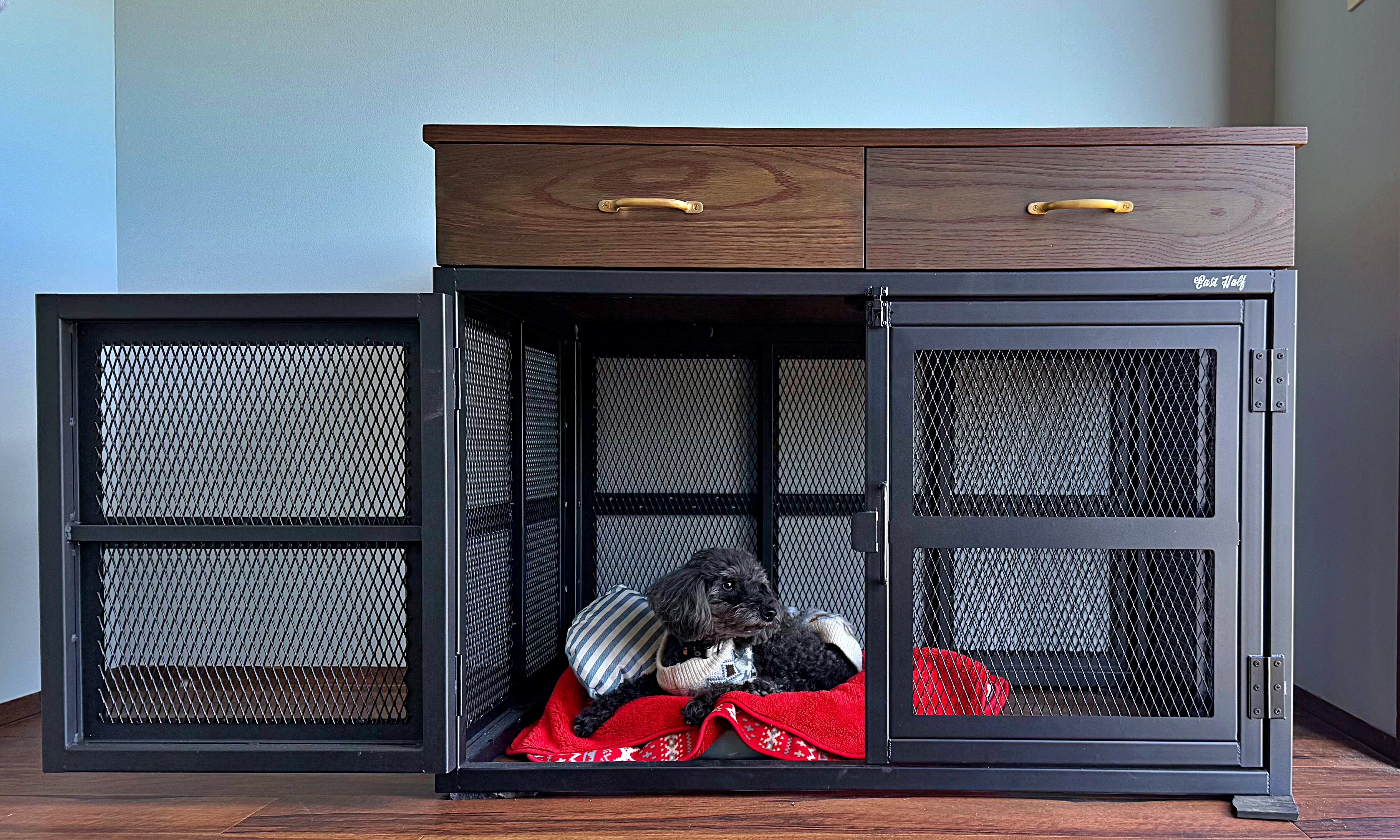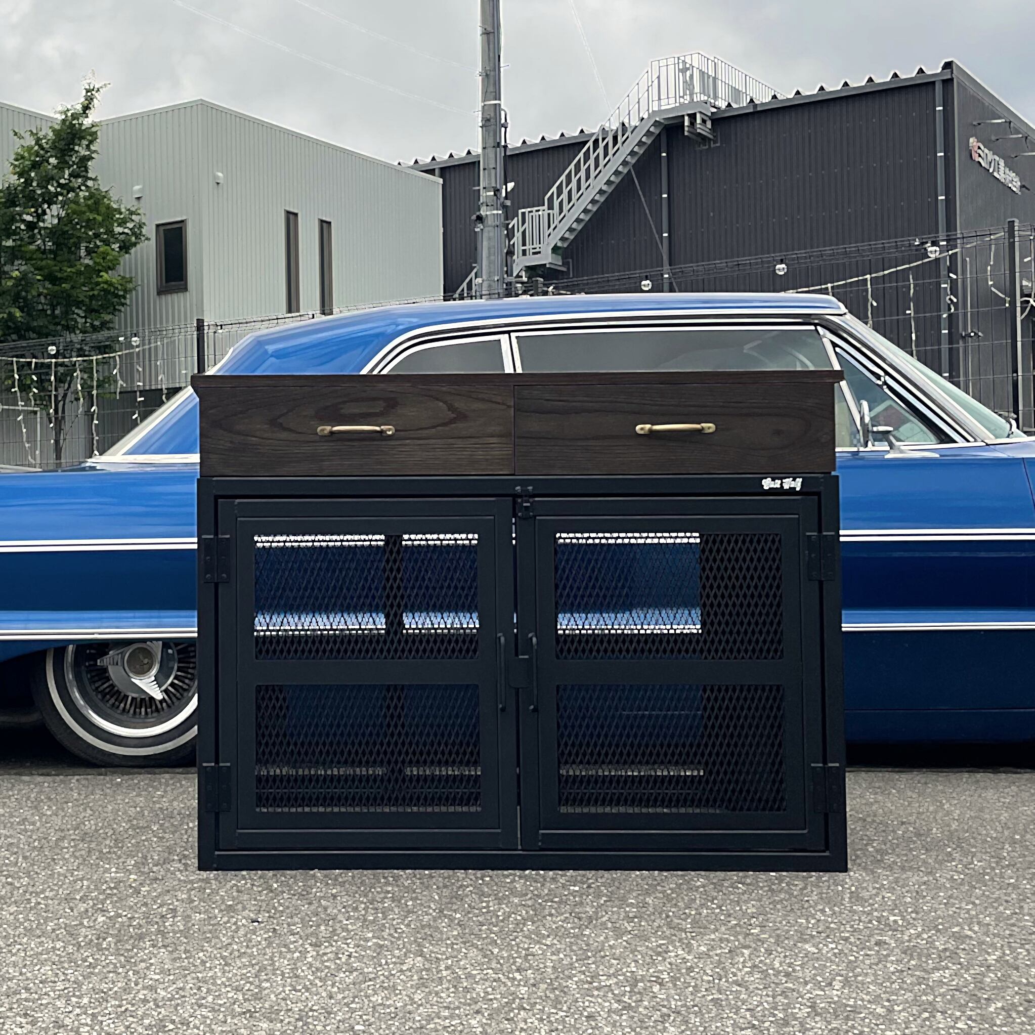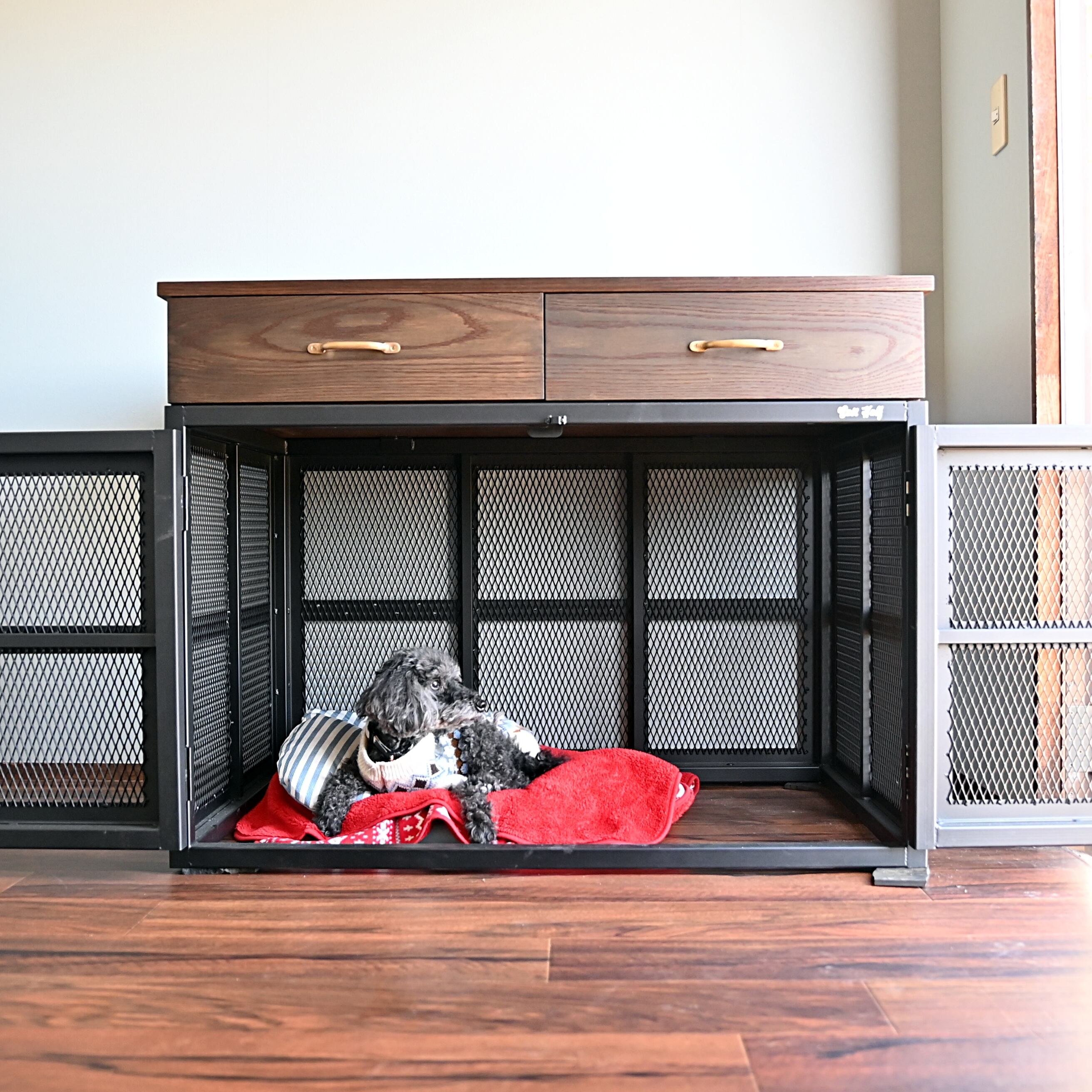 テーブルとなる天板をつけたり、引き出しをつければ家具のようなドッグハウスになります。